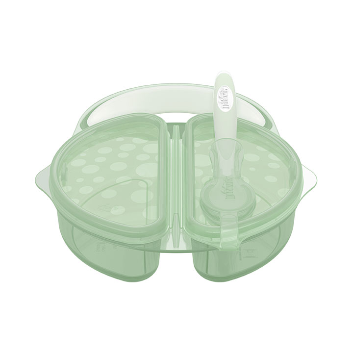It's go time! Grab Dr. Brown's Travel Fresh Bowl & Spoon for on-the-go, no-mess meals. Feeding baby on the move just got easier with the Travel Fresh Bowl and snap-in spoon, featuring two separate compartments perfect for transportation of multiple foods. The secure-seal lid keeps food stored safely and its flexible design lets you open one compartment at a time or remove the lid entirely. You won't lose the spoon with the snap-in spoon holder - plus it keeps your bag mess free! Use the convenient comfort-grip handle to simplify feeding no matter where you are. Included is the Dr. Brown's Soft-Tip Spoon that gently grabs every bite from the bowl and baby's face. Clean up is a breeze! Travel Fresh Bowl is dishwasher (top rack) safe and the Soft-Tip Spoon is dishwasher and sterilizer safe. BPA free. 4m+.