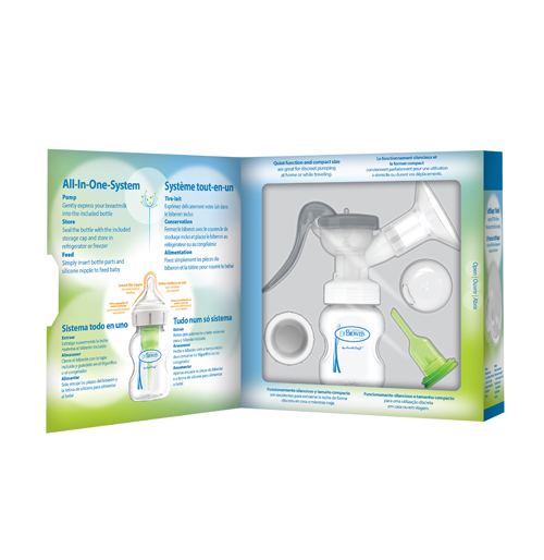 - Comes with (1) Manual Breast Pump, (1) 5 oz/150 ml Dr. Brown’s™ Options+™ Wide-Neck Bottle with Level 1 Nipple, (1) Wide-Neck Storage Travel Cap, (1) Cleaning Brush