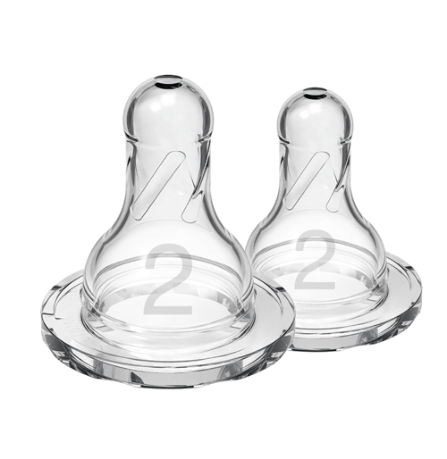 Dr. Brown’s Natural Flow® Level 2 Nipple is the next step for babies 3 months+. Dr. Brown’s® Level 2 Nipple, together with the Anti-Colic internal vent system, is clinically proven to reduce colic. Dr. Brown’s® bottle and nipple provide a more comfortable feeding experience for baby by decreasing spit-up, burping and gas. This vacuum-free feeding is closest to breastfeeding and Dr. Brown’s® Medium Flow Nipples provide a consistent flow so baby can feed at their own pace. The breast-like nipple shape encourages a proper latch for a more natural bottle feeding experience and eases the transition from breast to bottle and back again. The Level 2 Nipple and Anti-Colic vent system is proven to help preserve bottle milk nutrients and aid in digestion for a better night’s sleep. Made of super-soft, 100% silicone, the Level 2 Nipple fits all Dr. Brown’s® narrow bottles. The suggested age range for the Level 2 Nipple is 3 months+, but baby’s preferred flow rate may vary. Safe for use in dishwasher (top rack only), electric and microwave sterilizers or boiling water. BPA free.