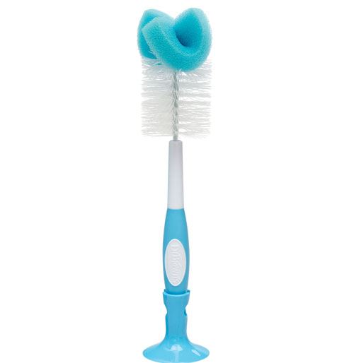 For use with all standard and wide-neck Dr. Brown's Natural Flow baby bottles, this Dr. Brown's Natural Flow Bottle Brush features a grooved, no-slip handle and a combination sponge and bristle brush head for thorough, easy cleaning of bottles. At the base of the bottle brush are fixed chevron channels, designed specifically to clean nipples with ease. A storage clip is included so you can house the brush near the sink.