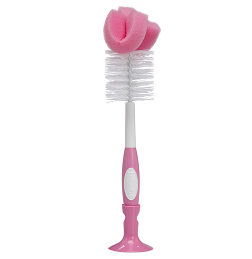 For use with all standard and wide-neck Dr. Brown's Natural Flow baby bottles, this Dr. Brown's Natural Flow Bottle Brush features a grooved, no-slip handle and a combination sponge and bristle brush head for thorough, easy cleaning of bottles. At the base of the bottle brush are fixed chevron channels, designed specifically to clean nipples with ease. A storage clip is included so you can house the brush near the sink.