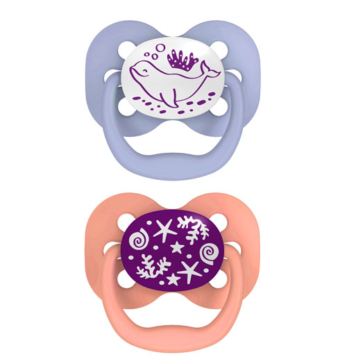 Advantage Pacifier - Stage 1, Glow in the Dark, Pink, 2-Pack