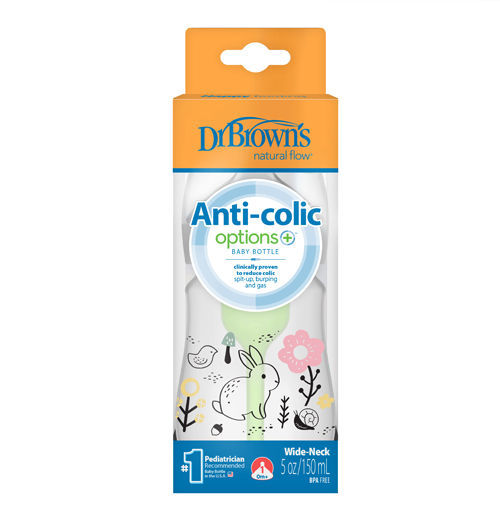 5 oz/150 mL PP W-N Anti-Colic Options+ Designer Bottle, Woodland Bunny Design, 1-Pack