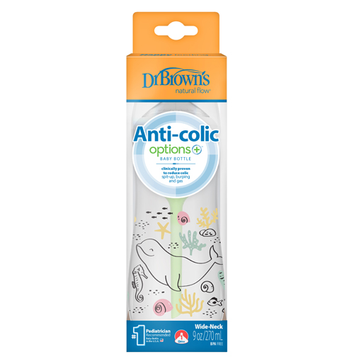 9 oz/270 mL PP W-N Anti-Colic Options+ Designer Bottle, Ocean Whale Design, 1-Pack