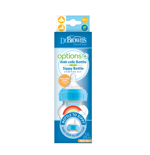 9 oz/270 ml PP W-N Options+ Blue Rainbows Bottle w/ Sippy Spout (+L3 Nipple in Bottle), 1-Pack