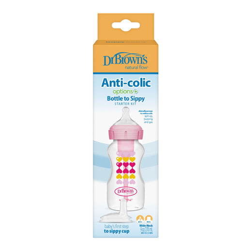 9 oz/270 ml PP W-N Options+ Pink Hearts Bottle w/ Sippy Spout (+L3 Nipple in Bottle), 1-Pack