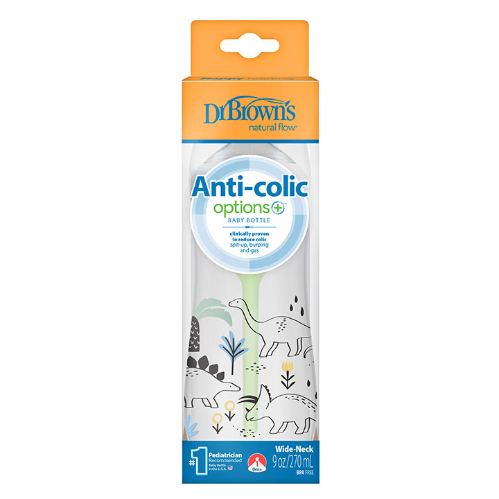 9 oz/270 mL PP W-N Anti-Colic Options+ Designer Bottle, Multi Dinosaurs Design, 1-Pack